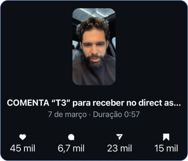 Com um método de criação que já gerou mais de 100 milhões de views orgânicos, você vai dominar os formatos, temas, roteiros e headlines que funcionam. Aqui você aprende a criar conteúdos que viralizam sem dancinha, despertam curiosidade, entregam valor e geram vendas.